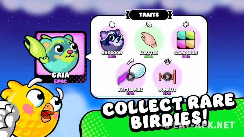 По ходу игры вы будете собирать яйца, из которых вылупляются птицы разной редкости и внешности. В Супер Флаппи Гольф есть миллионы комбинаций пернатых, которые всегда поднимут настроение.