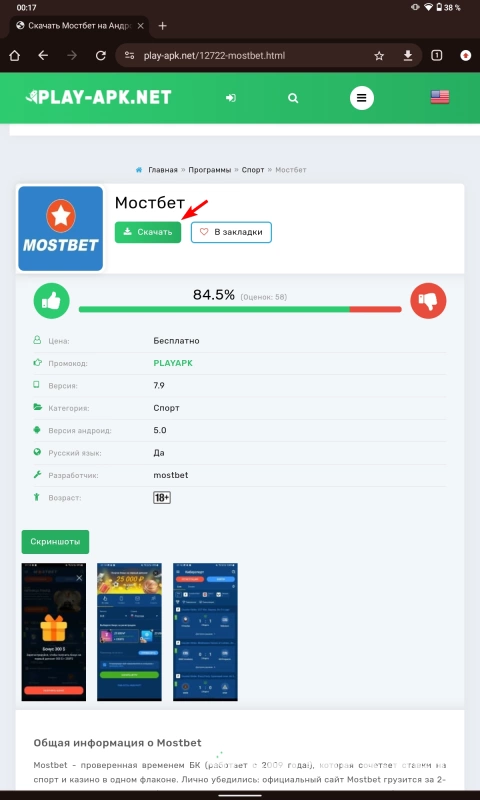 Чтобы пополнить Мостбет, перейдите по ссылке и скачайте официальное приложение с нашего сайта. Затем установите его на телефон и запустите.