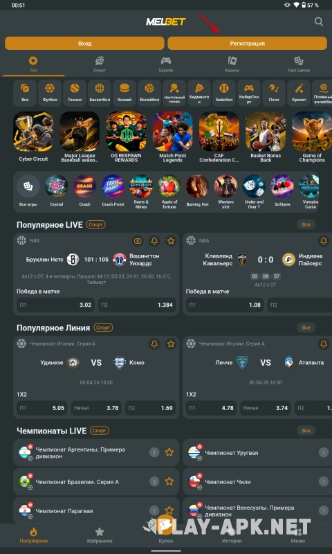 Чтобы получить фрибет Мелбет, перейдите по ссылке и скачайте приложение с нашего сайта. Затем установите.