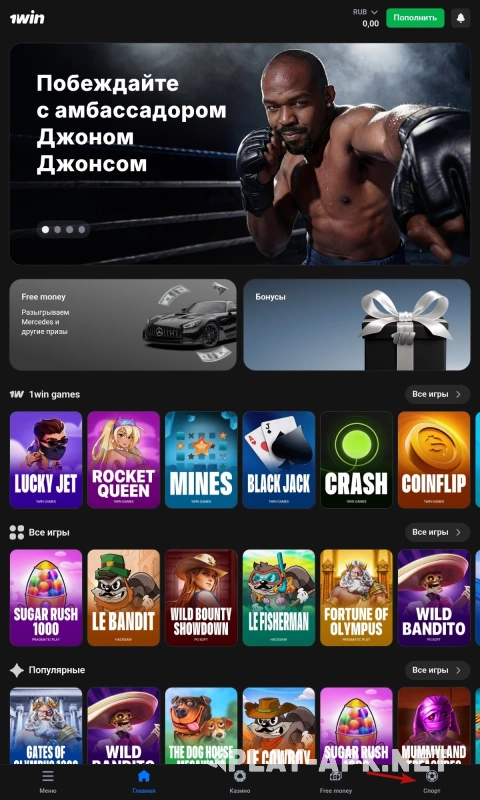 Задействовать свой бонусный счёт можно по-разному, достаточно сделать любую ставку на спорт. Для этого перейдите в соответствующую вкладку и выберите ставку на исход какого угодно матча.