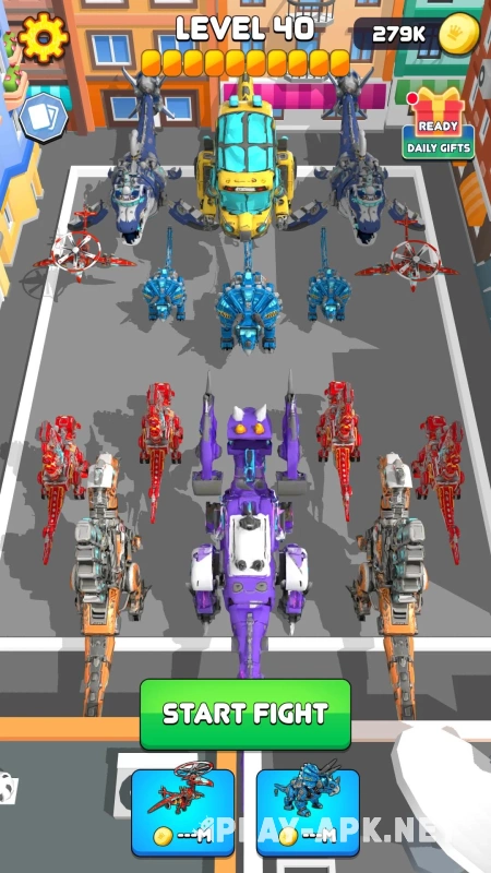 Действие разворачивается в будущем, где древние хищники вернулись в виде боевых машин. У каждого динозавра — свой корпус, оружие и роль на арене. Вы собираете отряд, настраиваете его и отправляете в бой. Сами сражения идут автоматически. Вы не кликаете без остановки, а думаете наперёд. Кого поставить в первый ряд, кого оставить на поддержке, чем усилить атаку — всё это решает исход схватки.
