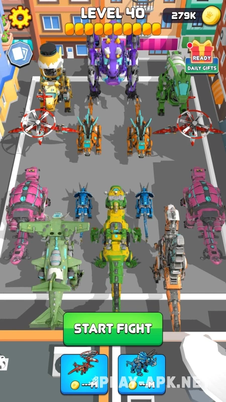 Бои проходят быстро. Динозавры сходятся на арене и начинают обмен ударами. В ход идут пилы, ракеты, буровые установки и другие виды оружия. Один боец давит массой, другой работает на дистанции. Комбинации решают больше, чем сила по отдельности. Иногда слабый на вид отряд выигрывает за счёт правильной расстановки.