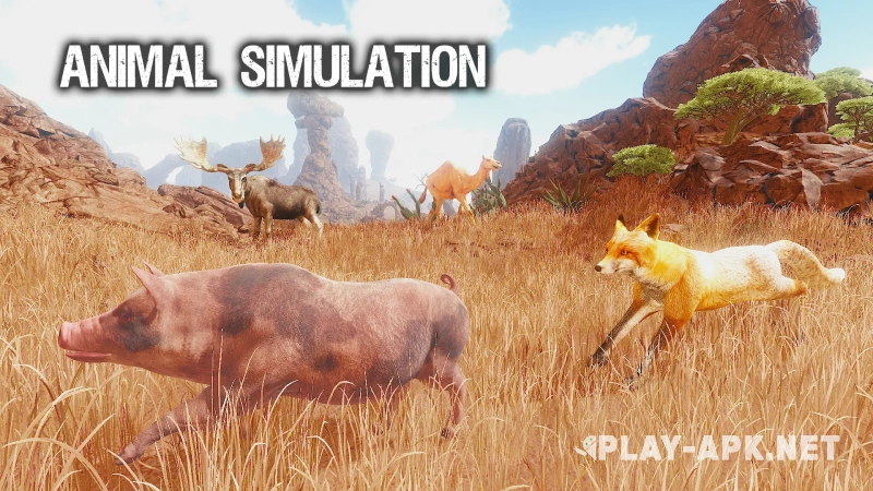 The Pig - Animal Simulator features a variety of beautiful, unique locations. These include dense forests, large hills, farm fields, and other habitats for various animals. Yes, there are not only pigs here but also other animals, from chickens and cows to bears and wolves. Therefore, you need to be careful not to fall prey to predators while finding your own food.