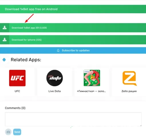 Open the 1xBet page on our website, then click the “Download” button. A list with two files will appear.