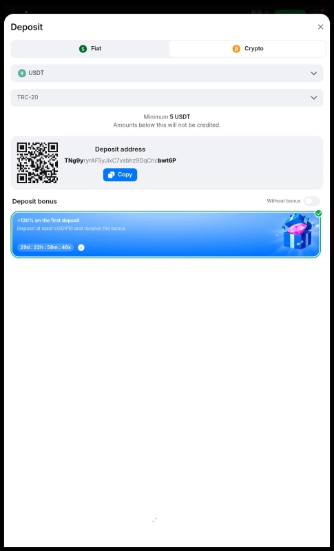 There is also an option to use cryptocurrency. 1win supports deposits via BTC, USDT, and other digital currencies. Amounts starting from $5 are credited. The app includes a detailed video guide, which you can open by tapping the blue button.