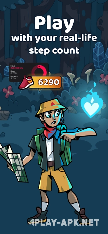 Gameplay is built around real steps. Your phone tracks your movement, and every meter you move strengthens your character. A walk around the neighborhood, your commute to work, or a light jog directly impacts your stamina and damage output. The more active your day, the more powerful your character becomes in battle. No complex settings are required—just keep moving.