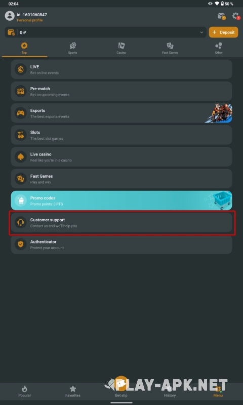 Now tap «Customer support» to open the list of ways to contact Melbet specialists.