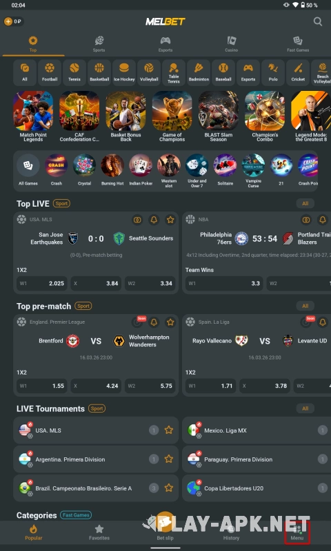 On the main page of the app, tap the «Menu» button located in the bottom right corner.
