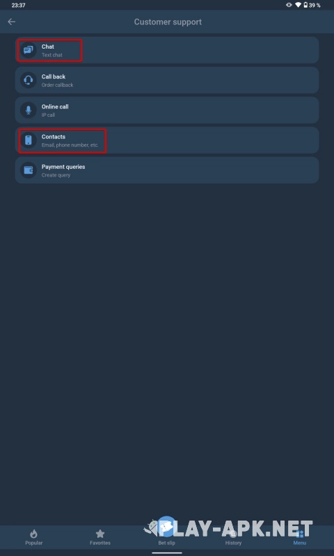 At the bottom of the menu that opens, you will see the «Customer support» section. Tap it.